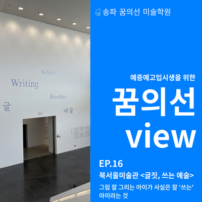매일 예중·예고 입시 학생들과 마주 앉을 때, 제가 가장 먼저 보는 것은 아이의 손이 아니라 아이의 시선입니다. 손의 기술은 시간이 해결하지만, 시선은 어려서부터 길러야 자기 것이 됩니다. 이 이야기를 한 발 더 깊이 끌고 들어가는 전시가 지금 서울시립 북서울미술관에서 열리고 있습니다. 〈글짓, 쓰는 예술 Where Writing Breathes〉. 송파에서는 다소 먼 노원이지만, 우리 송파 미술학원 학생들에게 꼭 한 번은 보여주고 싶어 직접 다녀왔습니다. 〈글짓, 쓰는 예술〉 전시 정보 한눈에 전시 부제 'Where Writing Breathes'는 '글이 숨 쉬는 곳'이라는 뜻입니다. 미술관에서 만나는 글이 작품의 설명이 아니라 작품....... <img src="https://blogthumb.pstatic.net/MjAyNjA0MjhfMzUg/MDAxNzc3MzY2ODU5OTU3.bABE65PRmds37N8STbPE98FSAZnVlkDMXQ57ppkk2HQg.oHvz0d6OktN7w9gFixW6fWekjwMnB5Is5Ru9tdEgDJIg.PNG/%BC%DB%C6%C4%B9%CC%BC%FA%C7%D0%BF%F8_%B1%DB%C1%FE%BE%B2%B4%C2%BF%B9%BC%FA_%C0%FC%BD%C3%BE%C8%B3%BB.png?type=s3" />