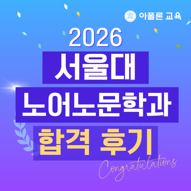2026 서울대 노어노문학과 합격 후기 - 아폴론교육
