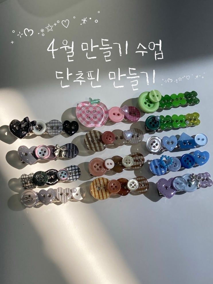4월의 만들기 수업은 요즘 유행하는 단추핀 만들기를 했어요~ 핀터레스트 감성 가득 단추핀 아이들이 너무 좋아해 줘서 4월의 만들기 수업 성공적이었답니다 슈링클스를 사용해 만들어주었는데요 열을 가하면 7배 작아지는 슈링클스의 특징을 이용해 도안에 맞춰 나만의 단추를 디자인해 봅니다 동그라미에 맞춰 만들거나 동그라미 안에 다른 모양을 만들어주기도 하고 각자 디자인을 생각하며 여러 그림들을 그려보아요 개성 넘치는 단추들이 많이 나와 기대되는 완성작들 도안들을 야무지게 그려준 뒤 슈링클스를 만들면 되는데요!! 구멍을 뚫을 위치도 고민해 보며 나만의 핀을 그렸어요~ 선물용으로 만든 친구들도 본인이 하고 다니....... <img src="https://blogthumb.pstatic.net/MjAyNjA0MjZfMzgg/MDAxNzc3MTk1MDQxNTA5.6nwX9STFZi7vj7A1d2jNjgA5c397PO8PyVqo4IEahXMg.OSTDfzg8PSC5Y_u6Y_FcT7x4J3-Qw39isP42PZNSqoEg.JPEG/IMG%A3%DF1855.jpg?type=s3" />