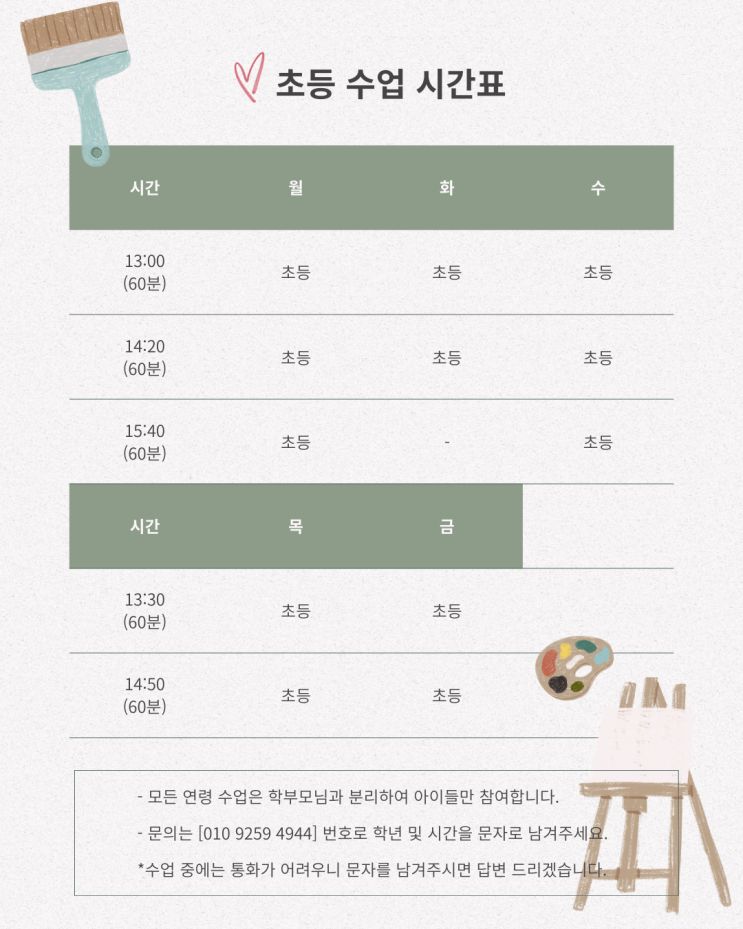 [마곡유아미술] 표현이 즐거워지는 시간, 유아 초등 미술 타임테이블 안내