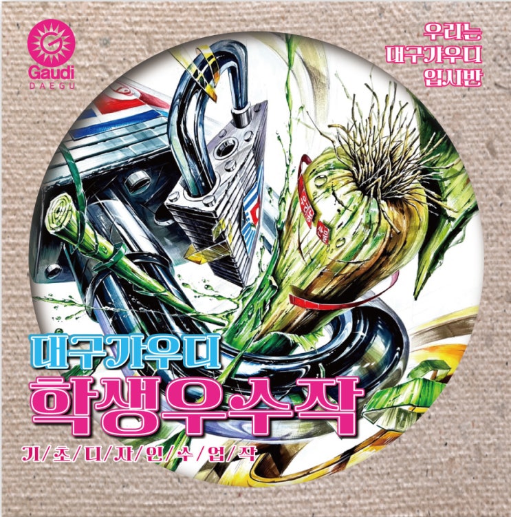 안녕하세요! 경산시지 디자인입시미술학원 가우디미술학원입니다~ 대구가우디미술학원에서 수업한 기초디자인 우수작을 소개해드리려고 해요. 가우디미술학원에서는 매달 2회의 연합평가를 진행하는데 소개해드릴 기초디자인 우수작도 또한 연합평가 주제였고 우수한 점수를 받은 기초디자인 그림들 이랍니다. 주제부터 살펴보실까요? 주제는 대파, 자물쇠, 테이프로 구성된 기초디자인 주제입니다. [대파] 녹색과 흰색색조로 이루어진 대파는 선의 성향과 슬라이스했을 때의 점의 성향을 함께 가지고 있으며 그림 전체에서 색조가 강하기 때문에 포인트가 되는 강조의 역할로 활용이 가능하다. 그리고 변화가 자유로운 소재이기에 전체적으로 역....... <img src="https://blogthumb.pstatic.net/MjAyNjA0MTRfMjMz/MDAxNzc2MTUxOTA2MDk3.om5EdgFoRA-72wVSzxRKNdmdqFmaFPE80bz_R-JgfcYg.BD86nqI8KfRSWDnSEoeVX8XvtvVWvzQvNuW221rScRwg.JPEG/26%BA%ED%B7%CE%B1%D7%C7%A5%C1%F6%28%C7%D0%BB%FD%BC%F6%BE%F7%C0%DB%29-%B4%EB%C6%C4-%C7%A5%C1%F6.jpg?type=s3" />