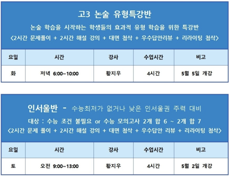 안녕하세요 수험생, 학부모 여러분. 어느덧 5월이 다가오고 있습니다. 2027학년도 대입 성공을 위해 논술을 고민 중이신 분들께 프로세스 논술 분당점 5월 개강 유형특강반 · 인서울반을 안내드립니다. 왜 5월에는 논술을 시작해야 하는가? 논술은 단기 벼락치기가 통하지 않는 과목입니다. 5월은 기초부터 심화까지 완성하고, 여름 파이널까지 연결되는 마지막 타이밍입니다. 겨울방학(1단계) → 1학기(2·3단계) → 여름특강 → 대학별 파이널 → 원서접수 이 흐름에서 5월은 2·3단계가 시작되는 구간으로, 이 시기를 놓치면 실전 쓰기 경험이 부족한 채 여름 파이널을 맞이하게 됩니다. 5월은 논술 유형 학습의 마지막 기회입니다! 이 중요한 시....... <img src="https://blogthumb.pstatic.net/MjAyNjA0MjRfNzIg/MDAxNzc3MDE4NzQ2MTg4._WiEvnyUd0p-wvtukbteb1JqG8KiOo-VzcYto8XSwzcg.kivLh5utCUPL-7cX2bWgmsK5Jn9NSyVXntGVqvsyBH8g.PNG/%BD%BA%C5%A9%B8%B0%BC%A6_2026-04-24_%BF%C0%C8%C4_5.18.31.png?type=s3" />