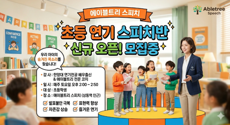 초등연기스피치반모집 부천초등스피치 "우리 아이의 숨겨진 목소리를 찾습니다!" 토2pm 에이블트리스피치