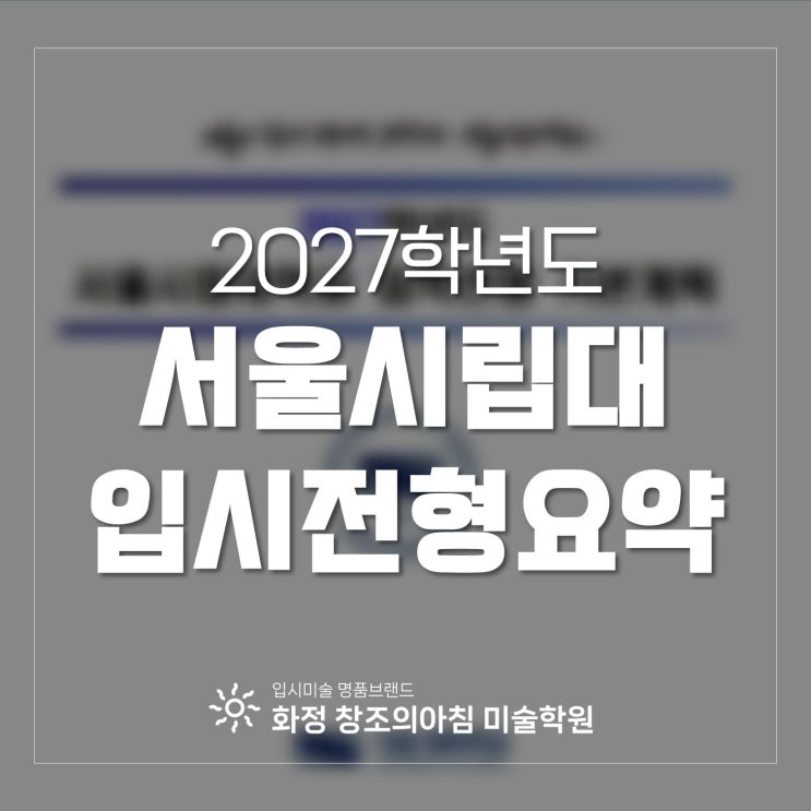 서울시립대학교 미대를 준비하는 학생들이 가장 많이 하는 질문이 있습니다. “실기 50%면 실기가 더 중요한 거 아닌가요?” “그럼 수능은 어느 정도면 되나요?” 겉으로 보이는 비율만 보면 그렇게 느낄 수 있습니다. 하지만 실제 합격 구조는 전혀 다르게 움직입니다. 오늘은 2027학년도 서울시립대 미대 입시를 기준으로 학생과 학부모 모두가 이해할 수 있도록 핵심만 정확하게 정리해 드리겠습니다. 2027 서울시립대 미대 모집인원 서울시립대학교 디자인계열은 정시 기준으로 선발됩니다. 시각디자인 전공 : 15명 산업디자인 전공 : 14명 총 모집인원 : 29명 선발 인원이 많지 않기 때문에 지원자 대비 경쟁률은 높게 형성되는 구조입니다....... <img src="https://blogthumb.pstatic.net/MjAyNjA0MTNfNDcg/MDAxNzc2MDQxNTM3ODMw.W3la8R3nNixok3fzG6DwzLUwB2aQkDQnlwFna08lKIQg.FjQc3tYjdQC_Obg8JCmhcpCdtAMelfFra7FnrXhOIG0g.JPEG/2027_%BC%AD%BF%EF%BD%C3%B8%B3%B4%EB_%C0%D4%BD%C3%C0%FC%C7%FC_%BF%E4%BE%E0_%2810%29.jpg?type=s3" />