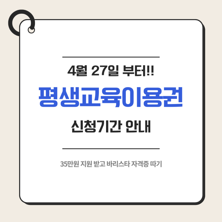 [김포바리스타학원] 김포 평생교육이용권 2차 신청|김포 바리스타 교육 35만원 지원