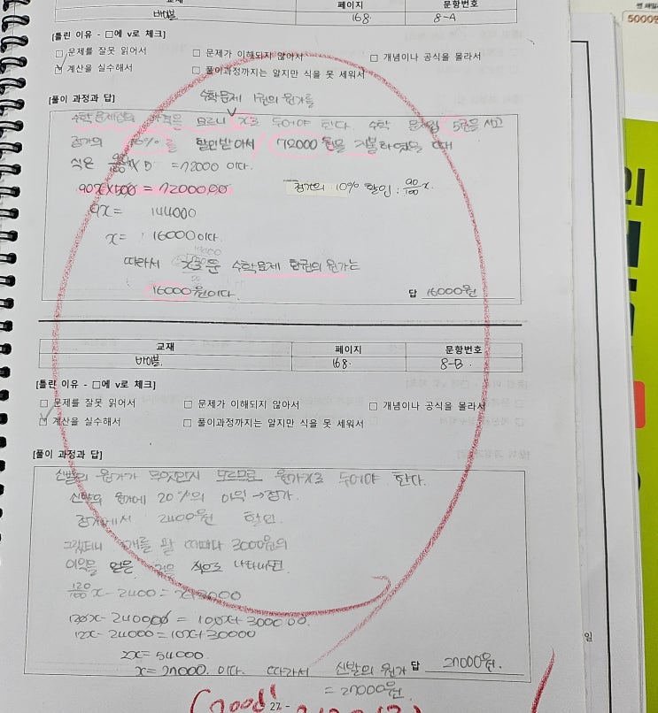 4월 28일 자랑합니다 – 깡~ 오답 실수노트(목동수학)