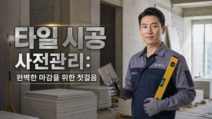 완벽한 타일 시공의 시작: 사전 관리 핵심 가이드 (전문가 필독!) 타일 시공 전문가 여러분! 오늘은 **타일 시공의 품질을 좌우하는 가장 중요한 단계, 바로 '사전 관리'**에 대해 깊이 있게 다뤄보려 합니다. 많은 분들이 타일 시공은 '붙이는 기술'이 전부라고 생각하시지만, 사실 하자 없는 완벽한 마감은 철저한 사전 준비에서 시작됩니다. 통계에 따르면 타일 시공 후 발생하는 하자의 약 80%가 사전 관리 미흡에서 비롯된다고 하니, 그 중요성은 아무리 강조해도 지나치지 않겠죠? 왜 사전 관리가 그렇게 중요할까요? "사전 준비에 투입하는 1시간은 시공 후 보수 작업의 10시간을 절약합니다." 이 말처럼, ....... <img src="https://blogthumb.pstatic.net/MjAyNjA0MjhfMTQx/MDAxNzc3MzY2MDg1MzQz.9_1li6NXswM9bX1entUoM-OCihm3uid8LkVJM7ed4ZMg.0EOBv6cDPXkchoNpCOozvNu1mAnVyDP7jM8x8TDpqMsg.PNG/tile_blog_image.png?type=s3" />