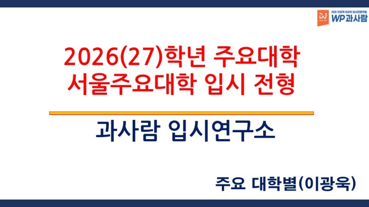 2027학년 서울주요대학 입시전형(입학전형계획기준) 정리1 - 과사람 입시연구소