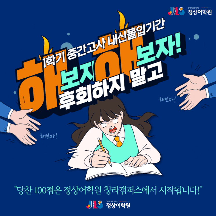 [공지사항] 2026년 1학기 중간고사 내신몰입기간 돌입 - "당찬 100점은 정상어학원 청라캠퍼스에서 시작됩니다."