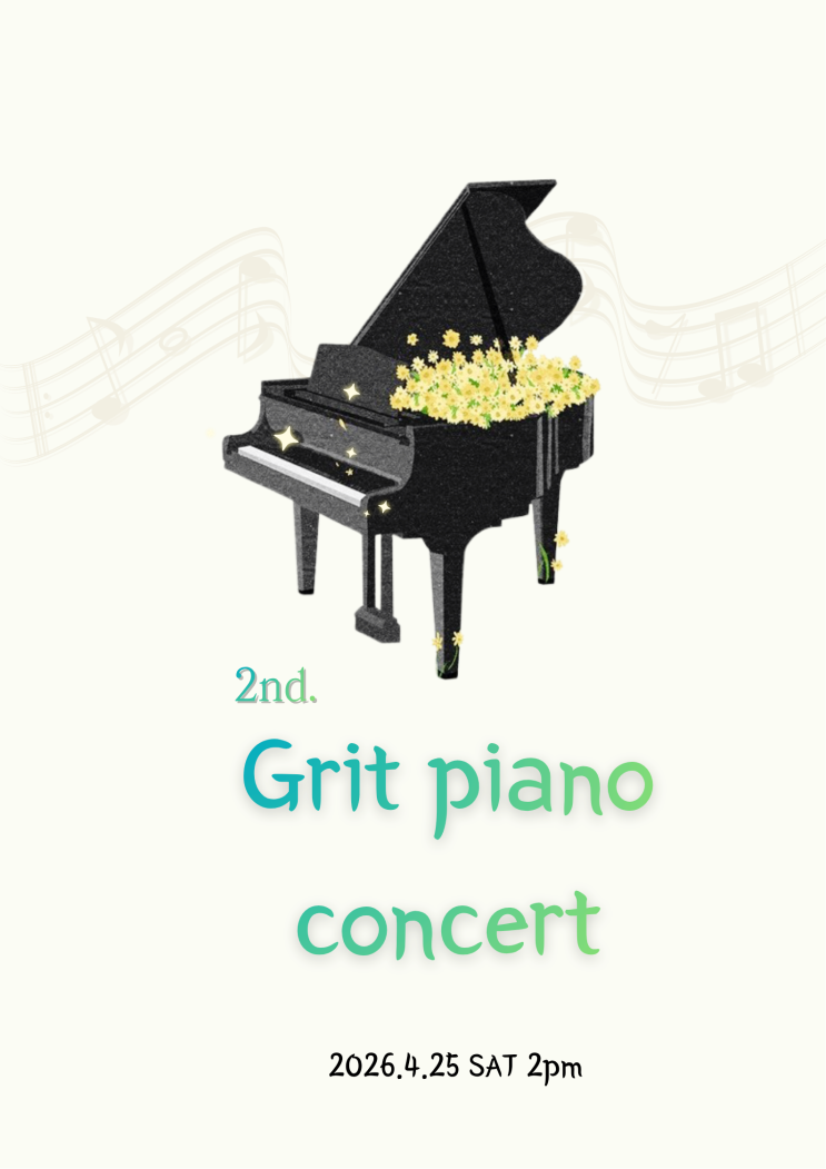 안녕하세요~~^^ 그릿음악학원입니다! 아이들과 즐겁게 준비한 정기 연주회를 학부모님들과 함께 4/25일 원내에서 진행하였습니다 직접 만든 포스터인데 봄 연주회 느낌 나죠? ㅎㅎ 무대 조명도 켜고 풍선도 장식하니 연주회 느낌이 나더라구요~ 학부모님들이 너무 좋아해주셨습니다 학부모님이 찍어 주신 2번째 연주회 트로피인데요 너무 이쁘지않나요 ^^ (리본 장식을 추가해서 하나씩 달아주었습니다!) 아이들 모습 너무 사랑스럽네요~~ 2개월 정도 솔로곡, 포핸즈 열심히 연습하고 따라와준 아이들에게 다시한번 박수를 보냅니다! 다들 연습할때보다 무대 집중도가 좋아서 너무너무 멋지게 연주해주었습니다 이번 무대가 아이들에게 좋은 추억....... <img src="https://blogthumb.pstatic.net/MjAyNjA0MjlfNTkg/MDAxNzc3NDUxMzg2NTk0.7tXmwn1ktwuYQFDYUHsi0l7x3OCXhWjoGt5raSdND1Ig.A_27h4n6fvslZtSn8vZYLcbkIEEaOdugChV1EFs4feYg.PNG/KakaoTalk_20260423_172423859.png?type=s3" />