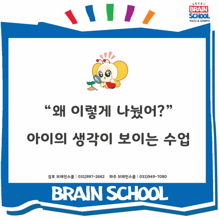 안녕하세요. 브레인스쿨 김포·파주점입니다. 오늘은 7세 친구들의 사고력 수업을 소개해드리려고 합니다. ✔ 기준을 정하는 힘, 사고력의 시작 이번 수업의 주제는 “기준을 정해요” 입니다. 아이들은 다양한 물건들을 보며 “어떻게 나눌 수 있을까?” “무슨 기준으로 나눠야 할까?” 스스로 기준을 생각해보는 활동을 했습니다. 처음에는 단순히 색, 모양으로 나누던 아이들이 점점 “색이 같으면서 모양이 다른 것” “두 가지 조건을 같이 만족하는 것” 처럼 기준을 확장하며 생각하기 시작합니다. ✔ 매트릭스 활동으로 확장되는 사고 이후에는 매트릭스 활동으로 연결됩니다. 기준을 바탕으로 칸을....... <img src="https://blogthumb.pstatic.net/MjAyNjA0MjJfNzEg/MDAxNzc2ODQ5NTI5MDU3.G1nhTf6vlp7T5hhcnG4pfTbdvnZidqF1mnlZhPqVzD4g.q-Q0AXnBx_zm05ef7XXhl8U2DoHb5nmsx8FNPTW0X0Ig.JPEG/%A4%BB%A4%BB.jpg?type=s3" />