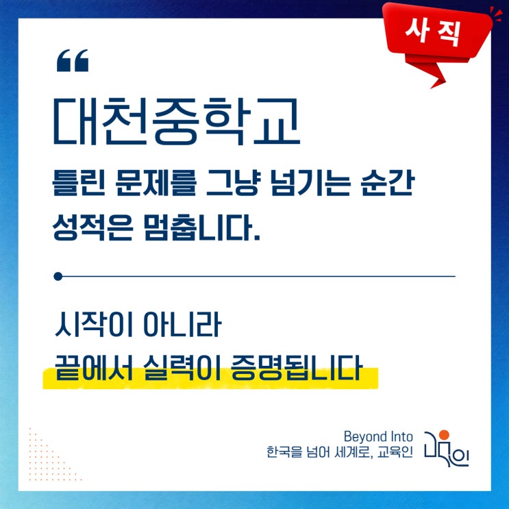 대천중학교 학원, 틀린 문제를 그냥 넘기는 순간 성적은 멈춥니다
