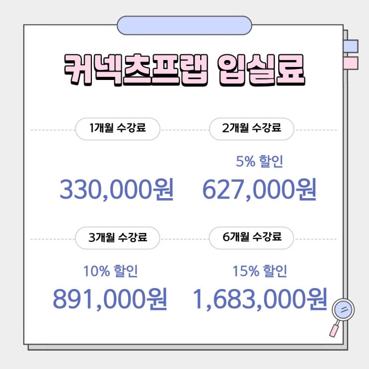 춘천 관리형독서실 커넥츠프랩 후평운교점 이용료 안내