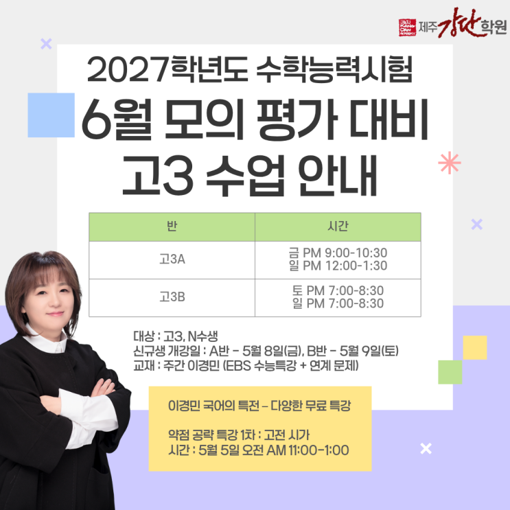 이경민 국어 6월 모의 평가 대비 고3 수업 안내 - 제주강단학원