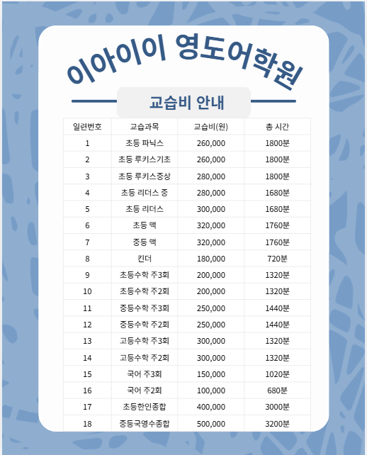 엄궁영어수학전문학원 삼성영어셀레나 엄궁캠퍼스 동물관련 이디엄