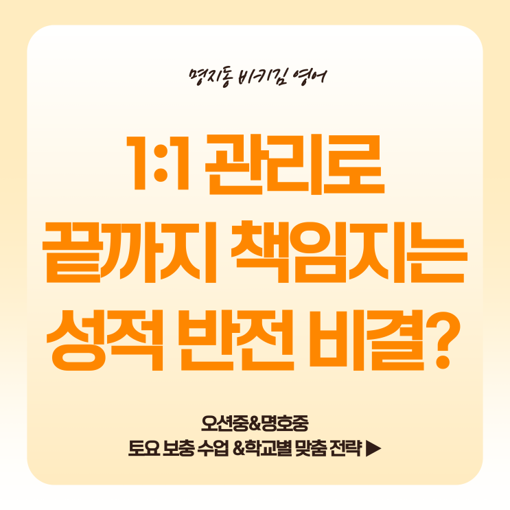 옆집 아이는 벌써 n 회독이라는데... 불안한 내신 기간, 확실한 대안은? 시험 기간만 되면 학부모님들의 마음은 타들어갑니다. 학원을 보내고는 있지만 우리 아이가 부족한 부분을 제대로 채우고 있는지 걱정이 앞서기 때문이죠. 특히 진도 빼기에 급급한 강의 속에서 우리 아이가 들러리만 서고 있는 것은 아닌지 불안함은 커져만 갑니다. 이제는 단순히 '오래 앉아 있는 공부'가 아니라, 아이의 구멍을 정확히 메우는 '진짜 공부'가 필요한 시점입니다. 그래서 오늘, 부산 명지동 영어학원 비키김 영어가 내신 기간 동안 오션중, 명호중 학생들을 어떻게 집중 관리하는지 그 핵심 전략을 공개합니다! ▶ "옆집 아이는....... <img src="https://blogthumb.pstatic.net/MjAyNjA0MTVfMjMw/MDAxNzc2MjMxMDU2NTMz.8WsBnYS32jVLpZTTLMdsEk8BmA_c8fA6fQq_5sgVwlIg.2nsQuRZwCH2bSeClGnYustb2f7bi4vHgaXzvVpMU7Fcg.PNG/%C1%A6%B8%F1%C0%BB_%C0%D4%B7%C2%C7%D8%C1%D6%BC%BC%BF%E4..png?type=s3" />