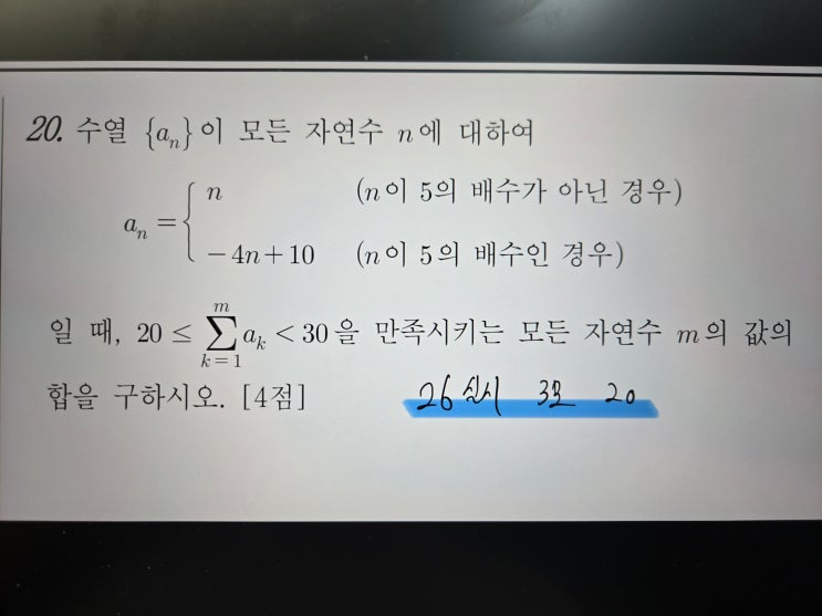 안녕하세요. 대치동 독학재수 & 수학학원 리미트제로입니다. [2026학년도 3월 모의고사 20번] 이 문제 맞았느냐 틀렸느냐보다 중요한 점이 있습니다. 빠르게 쳐낼 수 있는 부분을 쳐내면서 풀었느냐. 풀리긴 했지만 오래 걸렸다? 이건 굉장히 위험합니다. 시간 부족은 단순히 몇 문제 못 풀었는가 아닌가에서 끝나지 않습니다. [1] EBS 정석 풀이의 구조 EBS 정석 풀이입니다. 굳이 여러 단계로 나누어 가정을 끼워넣고 여러 차례 계산을 요구하고 있습니다. 대부분의 학생들은 이 풀이를 따라갑니다. 당연히 틀리지 않았습니다. 하지만 중요한 건 시험장에서의 효율입니다. 이렇게 풀면 기본 2분 이상 맞아도 손해 보는 풀이입니다. 실전에....... <img src="https://blogthumb.pstatic.net/MjAyNjA0MjBfMTgz/MDAxNzc2NjgyNzQxNTg0.CnJRZiMi-MDM866mZ3p5U_tmPzYJmA4AIaO5gJaZefEg.X5MrHZ0_CaGLIBhRkkLf_gba13ZrlpHtgfwe24fQeDYg.JPEG/1._26%BD%C7%BD%C3_3%BF%F9%B8%F0%C0%C7%B0%ED%BB%E7_20%B9%F8_%B9%AE%C7%D7.jpg?type=s3" />