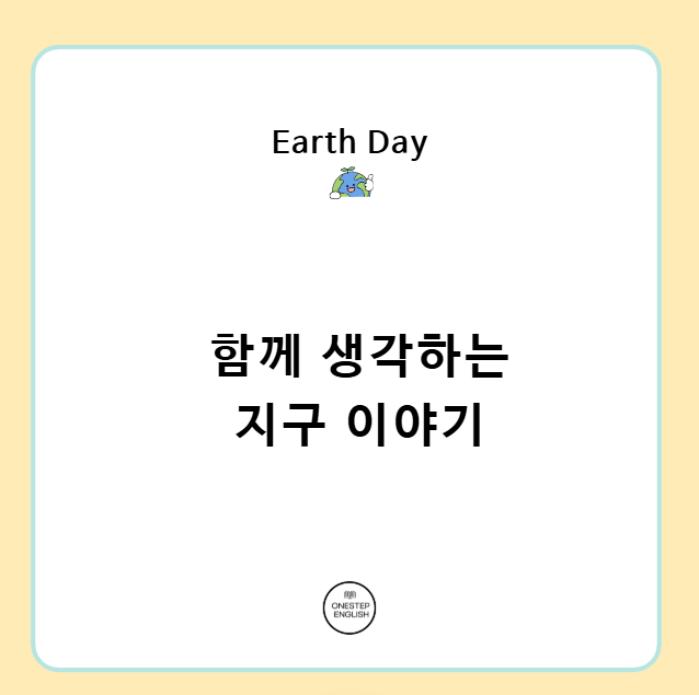 지구의 날을 맞아 아이들과 함께 우리가 지구를 도울 수 있는 방법에 대해 이야기를 나누는 시간을 가졌습니다. Reduce, Reuse, Recycle 이 세 가지를 중심으로 아이들이 일상에서 실천할 수 있는 행동들을 생각해보고 직접 영어로 표현해보았습니다. “Turn off the lights” “Use less water” “Recycle paper” 아이들은 단순히 문장을 외운 것이 아니라 자신의 생각을 영어로 만들어냈습니다. 이런 경험이 쌓일수록 영어는 공부해야 하는 과목이 아니라 자신의 생각을 표현하는 도구가 됩니다. 많은 부모님들이 궁금해하십니다. “이런 활동 수업이 정말 영어 실력에 도움이 될까요?” 결론부터 말씀드리면, 이런 경험이 쌓여야 아이....... <img src="https://blogthumb.pstatic.net/MjAyNjA0MjZfMzIg/MDAxNzc3MjEzNDg0MDU2.HRmgRYLCJLad7fvfUAmxu3oUQgPHCV7eDzrFHhHDm4Yg.Hk1Il9ev59bmJ4f37Q3aF-SGkqN_6XpYZVuql3wiCLwg.PNG/image.png?type=s3" />