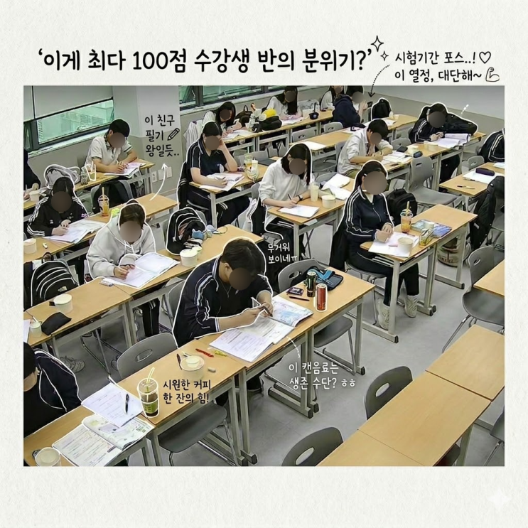 정-말 오랜만에 오네요! 유니쌤입니다 이번 시험은 고1~3까지 내신 박살! 내느라 너무 바빴답니다ㅠㅠ 그만큼 제 몸과 시간을 갈아넣었던 첫 중간고사! 어떤 결과가 나왔을까요? .... 전 제가 최고인 것 같아요. 문현고2 국어 시험은 제가 최곱니다. 일단 성적 결과를 좀 보여드리자면요.. 100점이 무려 7명 약 25명 내외의 학생 전체 평균 93점 다른 말이 필요할까요? 제가... 좀 기뻐하고 신나도 될까요? 네 너무 신납니다!!!! 왜냐하면 첫 시작이 문현고 2학년이라서ㅠㅠ 직전 보강을 충분히 하지 못한 건 아닐까 걱정했었거든요. 근데 다행히! 학생들이 초집중해서 잘 마무리했답니다 ㅎㅎ 그럼 어떻게 이런 결과가 나올 수 있었나? 사....... <img src="https://blogthumb.pstatic.net/MjAyNjA0MjlfMTkz/MDAxNzc3NDUyMjYxMDI4.xqpTmuhB3H0SGrLLJ7EnUtmlFgYh_J0yWtD19Od0nI4g.VZkQqly4MtDDd6fMF6e0ftyMRxJmznaxq-EdYVa_lRsg.PNG/image.png?type=s3" />