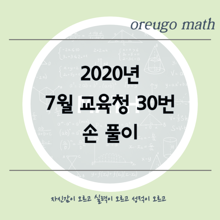 2020년 07월 교육청 나형 30번 g(x) 를 구했으니 이제, 적분은 여러분의 몫이에요 ♡ 풀이과정이 제대로 잡혀있지 않은 학생에겐 풀이과정의 연습을! 수학에 대해 자신감이 없고 수학이 두려운 학생에겐 기본부터 심화까지 단계적으로 갈 수 있는 학습을! 문제풀이 양이 적은 학생에겐 조금씩 늘려가는 학습을! 수학에 대한 자신감을 얻을 수 있도록 오르고 수학은 학생들과 함께 노력하겠습니다. <img src="https://blogthumb.pstatic.net/MjAyNjA0MTNfNDQg/MDAxNzc2MDU2MjA0MDA2.4Nz2AT334m_hF3zvHSg04pGKNt2oK2X4yyY59ocGiwcg.-ByK5SIClQIk4lLZbVxfQa10bE7diAvP2Dd8RHYRypUg.PNG/%BA%ED%B7%CE%B1%D7_%B9%AE%C1%A6%C7%AE%C0%CC-005.png?type=s3" />
