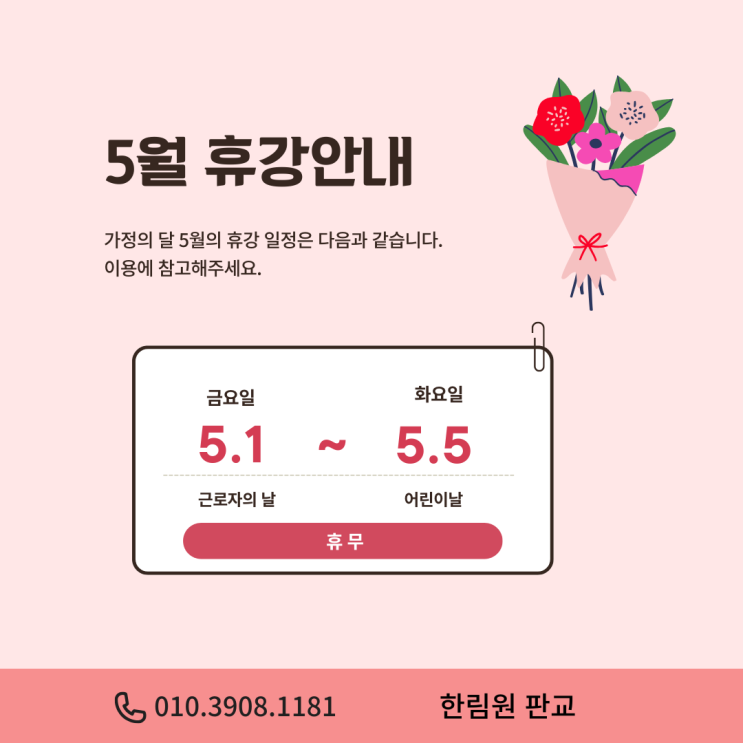 [공지] 5월 가정의 달 휴강 일정 안내 (5/1~5/5)