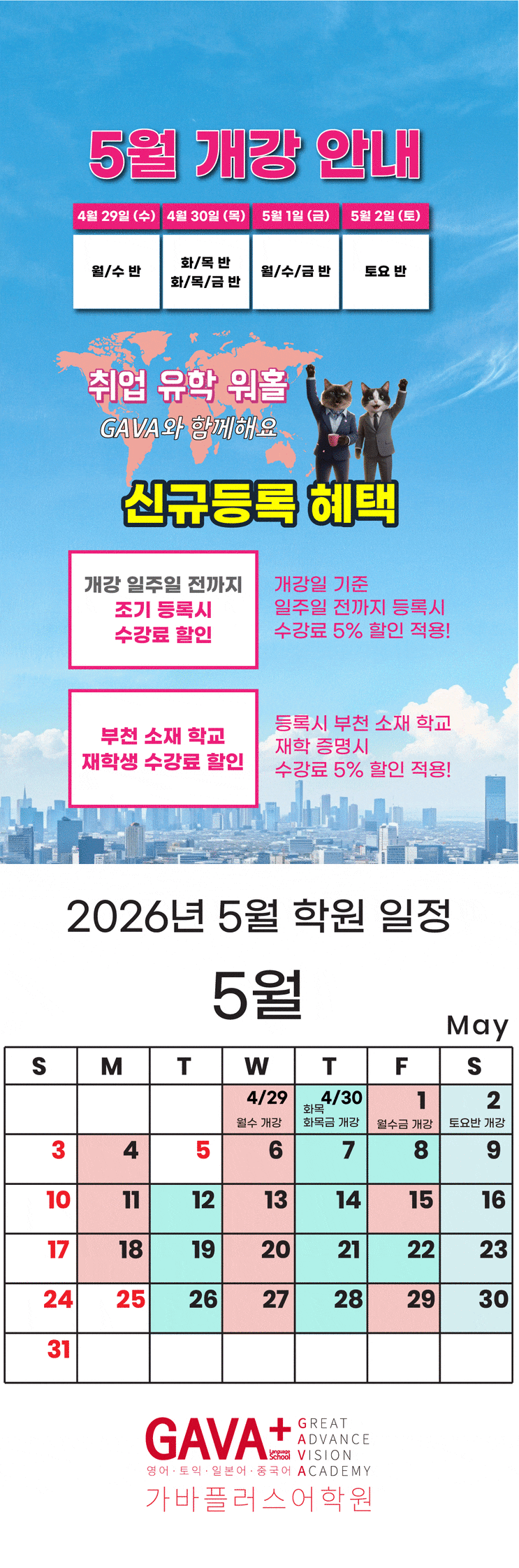 [부천역 학원] 5월 개강 안내 | 가바플러스어학원 5월 개강 안내