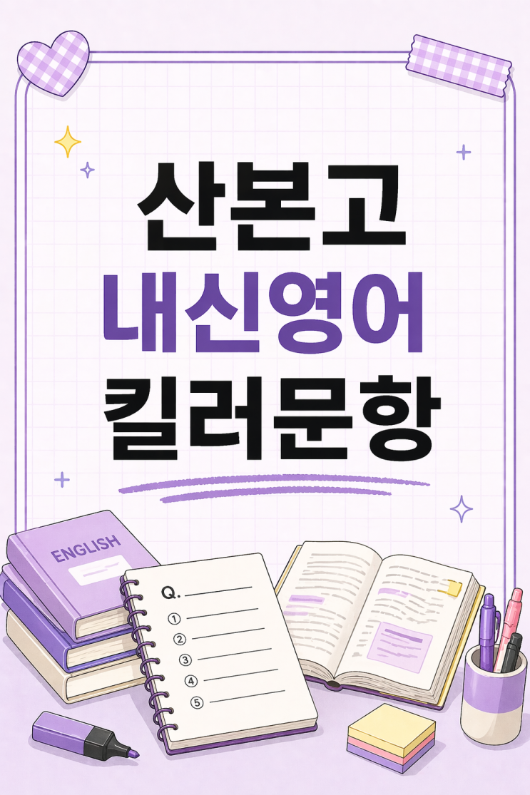 산본고 1학년 학생들에게 1학기 중간고사는 고등학교에 입학한 뒤 처음 치르는 본격적인 내신시험입니다. 첫 시험은 단순히 한 번의 평가가 아니라, 앞으로의 공부 방향과 자신감을 결정하는 중요한 출발점이 됩니다. 특히 영어 과목은 중학교와 비교해 시험 방식 자체가 크게 달라지기 때문에, 기존 방식대로 준비하면 당황하기 쉽습니다. 많은 학생들이 산본고 영어 시험을 준비하며 가장 궁금해하는 부분은 “어떤 유형이 나오느냐”입니다. 산본고는 학교만의 뚜렷한 출제 특징이 있는 만큼, 일반적인 공부보다 산본고 패턴에 맞춘 맞춤 학습이 반드시 필요합니다. 산본고 1학년 첫 영어 시험, 무엇이 다를까요? 먼저 알아둘 점은 산본고 대....... <img src="https://blogthumb.pstatic.net/MjAyNjA0MjNfMTE3/MDAxNzc2OTI1MDE0Mjk1.KKNIFTW7zEKqACtQPgAi8T5pPx0ieAOMedrFVCKV-YQg.STUD96SCz5NP9qD5EDoQRvmOzmclaupZMzdyvgE_yN8g.PNG/ChatGPT_Image_2026%B3%E2_4%BF%F9_23%C0%CF_%BF%C0%C8%C4_03_16_25.png?type=s3" />