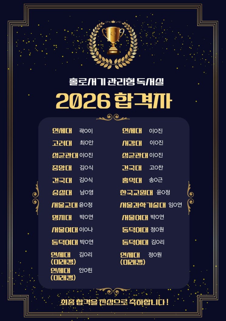 <홀로서기 관리형 독서실> 2026학년도 대학 합격자 명단