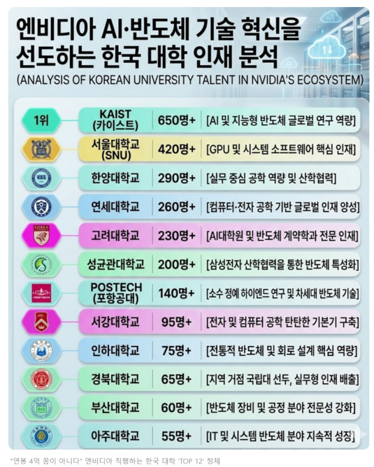 이공계를 위한 기사 - 엔비디아 재직자 데이터 한국 대학들