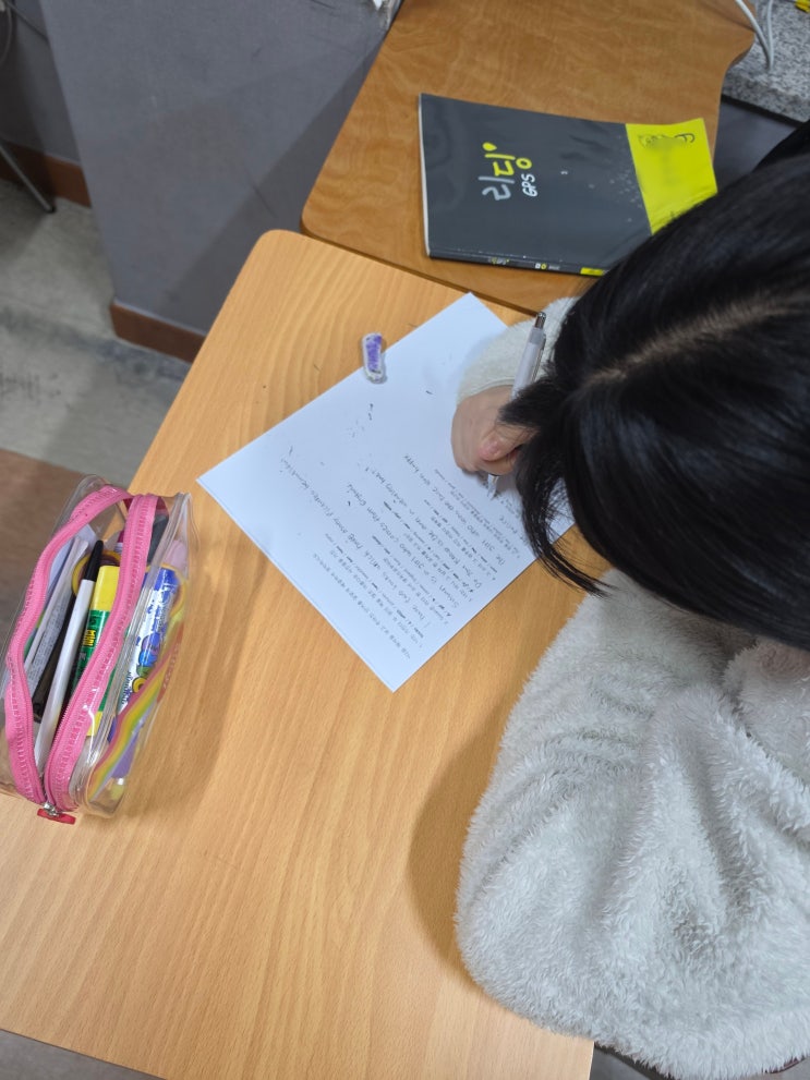 안녕하세요~ 파로스어학원입니다. 겨울방학 동안 이제는 더 이상 영어를 놓을 수 없다는 각오로 중3이 되는 시기에 학원에 온 친구들이 많습니다. 더딜지라도 차곡차곡 기본기를 다져갔는데요. 새 학기가 시작되고 본격적인 중간고사 기간이 시작되기 직전까지도 마지막 문법 기초 보강을 진행했습니다. 보강 끝자락, 그동안 배운 문법으로 문장을 만들어보는 순간이 다가왔습니다. 오늘도 한 학생이 문장을 쓰다가 지우고, 다시 쓰고, 또 고치기를 반복하더라고요. (수많은 지우개 가루들,,,) 처음엔 막막해하던 아이가 배운 문법을 하나씩 끼워 넣으면서 끝까지 문장을 완성해 보려는 모습입니다. 중간에 여러 번 멈추고 고민했지만 결국 스스....... <img src="https://blogthumb.pstatic.net/MjAyNjA0MjFfMzgg/MDAxNzc2NzU2Njc4NDYz.eBSmy78tpL1_bzBUBzPEf9U7G0T9LjWH97hxnMFU3wIg.i9t96rgpF3aYuYRCJ6wC2PKM2M6SAmiC8qLHXxjHobAg.JPEG/20260402_220307.jpg?type=s3" />