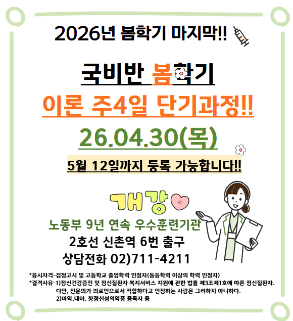 [유엔간호학원] 26년 상반기 마지막 국비과정