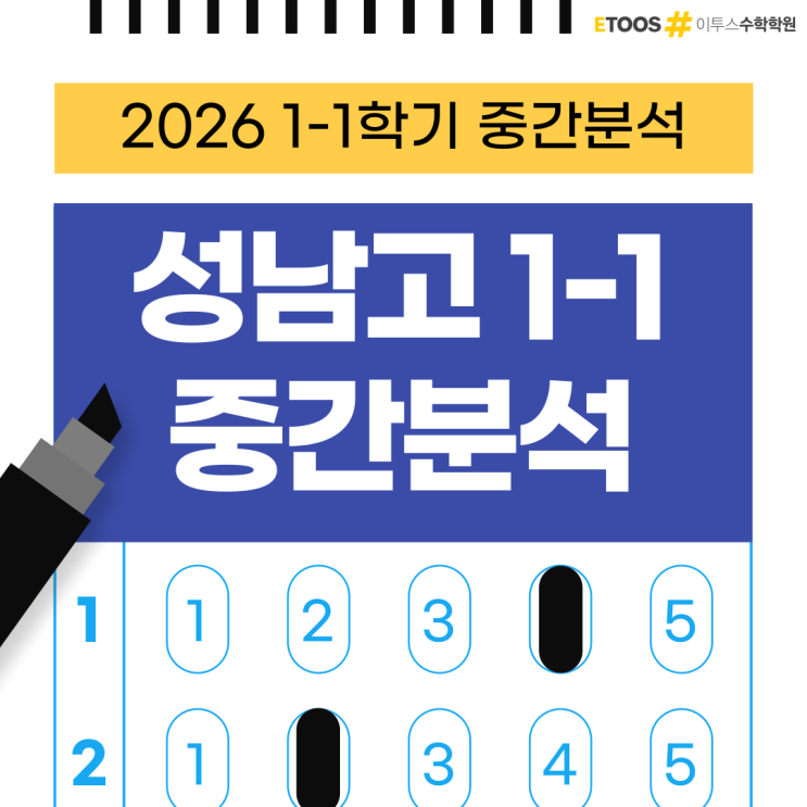 안녕하세요, 이투스 수학학원입니다. 2026학년도 1학기 중간고사 성남고등학교 1학년 수학 분석을 시작합니다. 선택형 20문항 + 단답형 4문항, 총 24문항을 단원별·배점별·난이도별로 분석했습니다. 시험 후 복기를 하는 학생부터 다음 시험을 미리 준비하는 학생, 학원 선택을 앞두고 학교 내신 경향을 파악하고 싶은 학부모님까지, 모두에게 유용한 자료가 되길 바랍니다. [1] 시험 한눈에 보기 ▸ 학교 : 성남고등학교 ▸ 학년 : 1학년 1학기 중간고사 ▸ 과목 : 수학 (공통수학) ▸ 문항 수 : 총 24문항 · 선택형 20문항 (80점) · 단답형 4문항 (20점) ▸ 총점 : 100점 선택형은 5지선다 객관식이고, 단답형 4문항은 풀이과정 없이 정답 숫자....... <img src="https://blogthumb.pstatic.net/MjAyNjA0MjlfNCAg/MDAxNzc3NDU1NTQ4NjI5.i01BLEyXhmWcfzLkEyXQOgZZewnyyeYLMdsLFAbq6EMg.0-l4_q0uZIIZhZQ0ByAfEyLcj86nDDrrwWvgEPWYycgg.PNG/%C1%A6%B8%F1%C0%BB-%C0%D4%B7%C2%C7%D8%C1%D6%BC%BC%BF%E4_-002.png?type=s3" />