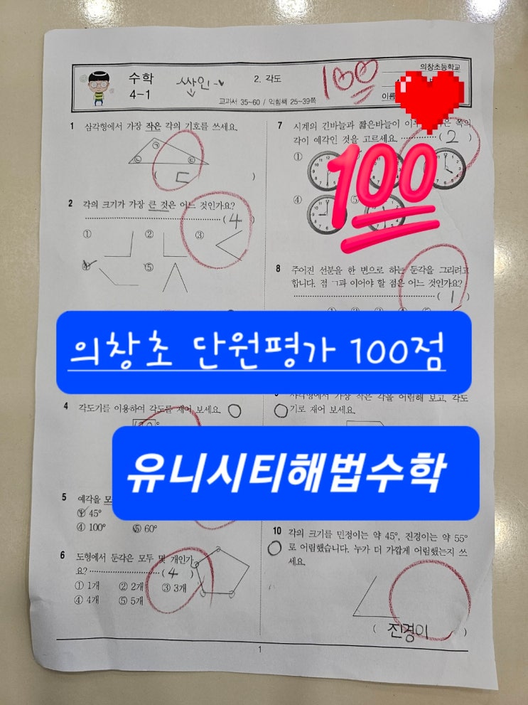 "의창초 단원평가, 이번에도 우리 아이만 어려워했나요?" 1. 확실한 결과 스마트해법수학 유니시티학원 친구들이 이번 의창초 단원평가에서 대거 100점을 기록했습니다! 단순 암기가 아닌 개념의 뿌리부터 탄탄하게 잡은 결과입니다. 2. 비결은 1:1 맞춤 아이마다 다른 취약점을 '무한 오답 관리'로 해결합니다. 모르는 문제 없이 시험장에 들어가니 자신감이 넘칠 수밖에 없죠! 3. 지금 바로 시작하세요 다음 100점의 주인공은 누구일까요? 지금 무료 학력 진단으로 우리 아이의 빈틈을 체크해보세요. ✨ 위치: 의창초 도보 3분, 유니시티 1단지 상가 2층 상담: [010-9995-4671, 010-6652-5264] #....... <img src="https://blogthumb.pstatic.net/MjAyNjA0MjZfNyAg/MDAxNzc3MjEwNjU0ODk1.Jq2GN-pmb6q95tUHHXGhTaAYxh3_RfC1wF5wakeY_cAg.-rqd7defERUdCkOJPK5zcjw4gzcJJ_mimcKzybtkyQYg.JPEG/1777208948791.jpg?type=s3" />