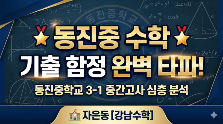 [진해 강남수학] 동진중 3-1 중간고사 심층 분석 & 대비 전략 가이드 (우선 원생중 한명의 시험지 풀이를 보니 답은 거의 다 맞은것 같네요. 일단 서술형에서 감점이 나올지는 모르겠는데 기분은 좋네요. 이 학생을 간단히 소개하자면 작년 여름방학때 왔는데 오기전의 성적은 60점에에서 70점대 였습니다. 저의 강남수학 시스템대로 기초부터 심화까지 그리고 1학년때 못한거 까지 모두 수준을 꾸준히 올렸습니다. 겨울방학을 지나고 이렇게 튼튼한 학생으로 실력이 향상 되었네요. 혹시 수학의 근본적인 체질을 바꾸고 싶으면 오세요. ! ) 아래는 시험을 대략 분석해보았습니다. 먼저 시험을 치르느라 고생한 우리 동진중학교 3학....... <img src="https://blogthumb.pstatic.net/MjAyNjA0MjNfMTIx/MDAxNzc2OTUyOTkxNzEz.cYexbDsXC8iv0o13Zytnbx5qDpjNQ1jpmA-6trpKPx0g.K9KDmpl6WxgC5TQIhPdtUKoAR3-e2slzRt11Vv9bcLYg.PNG/900_1776952976517.png?type=s3" />
