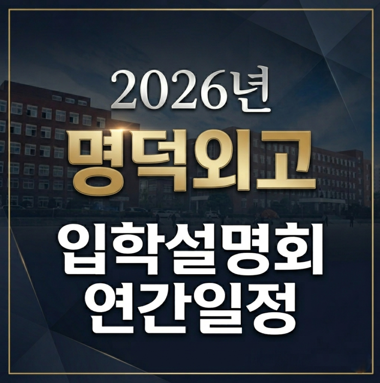 자사고 특목고 입시전문 강남 영재사관학원입니다. 명덕외고에서 2027학년도 신입학을 위한 2026년 입학설명회 연간일정을 공지하였습니다. 명덕외고 지원을 고민하는 학생과 학부모님이라면 입학설명회 일정과 예약일, 회차별 안내 내용을 미리 확인해두시면 도움이 될 것으로 생각됩니다. 이번 명덕외고 입학설명회는 총 3회로 진행됩니다. 상반기 1회, 하반기 2회 일정으로 운영되며, 회차가 뒤로 갈수록 안내 내용도 조금씩 더 구체적으로 구성되어 있습니다. 2026년 명덕외고 입학설명회 핵심 요약 총 3회 진행 일정 - 5월 16일, 9월 5일, 11월 7일 시간 - 토요일 오전 11시~ 오후 1시 장소 - 명덕외고 기숙사 체육관 예약 - 각 회차별 지정....... <img src="https://blogthumb.pstatic.net/MjAyNjA0MjBfODMg/MDAxNzc2NjU3MTg3MDAz.hg32ybD5nDmIM5WElA8DwydBSTea-aKcc7jHl6b4d5Yg.NZbQZ94I4qbYBtTAa3kumdtmAKJSldWLjEqvP91LJrYg.PNG/image.png?type=s3" />