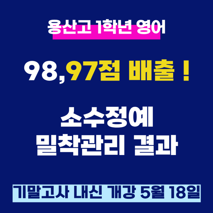 용산고 1학년 1학기 중간고사 영어 98점, 97점 배출! 소수정예 내신대비의 힘