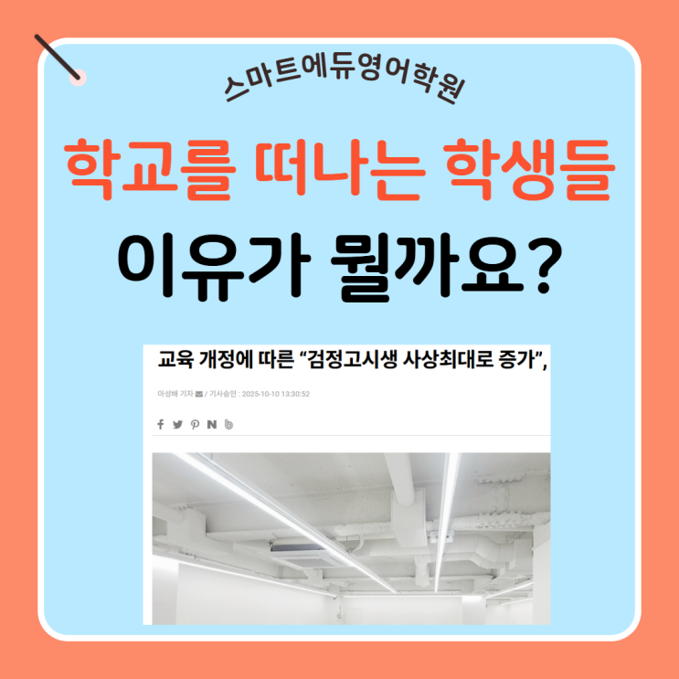 완연한 봄 날씨가 이어지는 4월입니다. 안녕하세요, 스마트에듀영어학원입니다. 고교학점제 이후에 입시에서 많은 변화가 일어나고 있는데 그중에서도 특이한 것이 있습니다! 학교를 떠나서 검정고시를 치루고 정시전형으로 대학에 진학을 하는 학생들의 비중이 조금씩 늘어나고 있다는 것입니다! 올해에도 검정고시로 고등학교를 졸업하고 서울대에 진학한 학생들이 44명이나 생길 정도로 검정고시후 정시전형 올인이라는 전략이 진행이 되고 있는 것 같습니다! 수치를 살펴보면은 고졸 검정고시 지원자 수가 최근 5년 가운데 가장 높은 수준을 기록했으며, 4년 전 대비 12% 이상 증가했다는 사실은 단순한 통계 이상의 의미를 가집니다. 특히 고....... <img src="https://blogthumb.pstatic.net/MjAyNjA0MjJfMjk5/MDAxNzc2ODE2NTE0Mjk4.xa9k3DA5bj3YFZzc2Tdox1J_h7i8pH7PhS9QV-hRT08g.tS-G7wqmQINyR-eMHI3Hccv74sk494ZwIdTLSqsQWm0g.PNG/%B0%ED%B1%B3%C7%D0%C1%A1%C1%A6_%B0%CB%C1%A4%B0%ED%BD%C3%C1%F5%B0%A1-001_%2819%29.png?type=s3" />