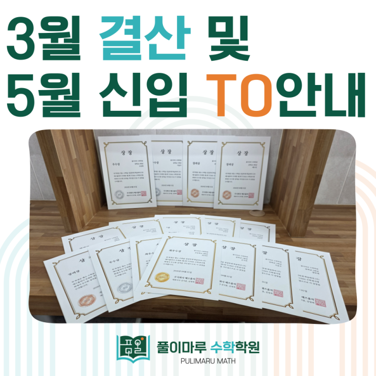 [유천동 수학학원] 3월 결산 및 5월 신입 TO안내