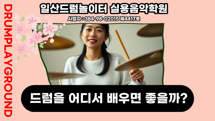드럼을 배우러 가고 싶다! 하는 생각을 하는 순간 사람들은 가장 먼저 "드럼학원" 을 선택합니다. 여러 배우는 루트들 중에서는 최선의 방법임이 확실하나 :) 여러가지 방법들이 있다는걸 알려 드립니다. 비용적인 측면에서 부담이 된다면 문화센터를 선택하세요 :) 문화센터의 경우 대형마트나 지역주민센터에서 운영을 하며, 가격이 3개월에 10~15만원 사이로 형성되어져 있는 경우가 많습니다. 달에 5만원 꼴로 정해진 시간에 단체로 수업을 합니다. 모집인원은 최소 3명에서 최대 10까지이고 한 장소에서 한 강사님이 여러대의 세트드럼 or 전자드럼을 놓고 회원님들과 대화하며 티칭을 하는게 특징입니다. 비용적인 측면에서 많이....... <img src="https://blogthumb.pstatic.net/MjAyNjA0MTdfNjUg/MDAxNzc2NDE3NTMyNzA3.3I0xLklqf3NlUSvuy3HUtwvfUtMmivZ26lZswmb-rjUg.7za6j2TQl1SMmoRkpKmFCrFyvxGRT_hwsFFttFzTB8Ug.PNG/%C1%A6%B8%F1%C0%BB_%C0%D4%B7%C2%C7%D8%C1%D6%BC%BC%BF%E4._-_2026-04-17T181846.169.png?type=s3" />
