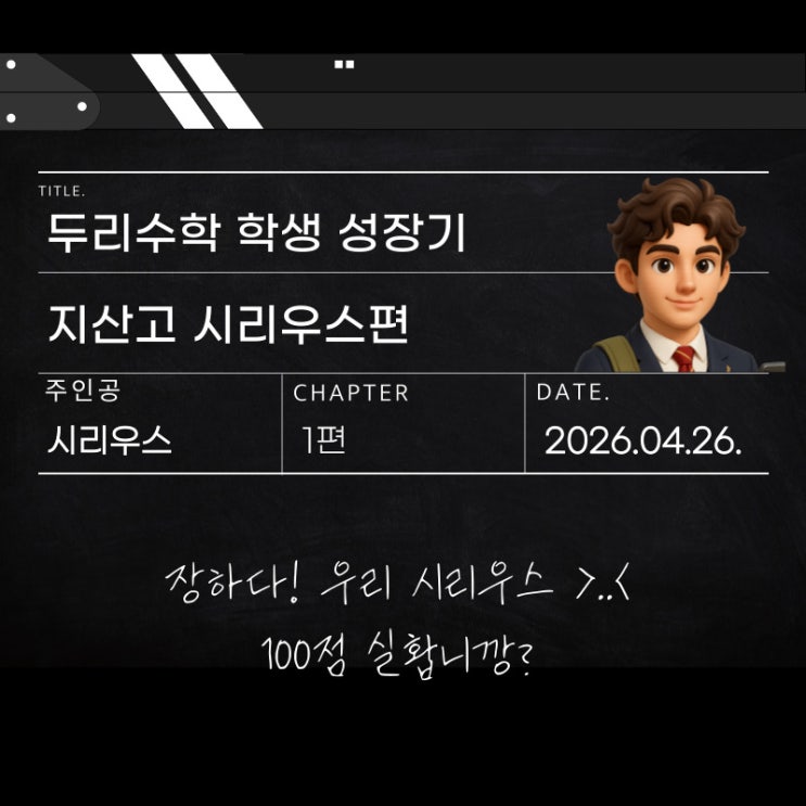 안녕하세요 >_< 두리수학학원입니당! 학생들의 이름 노출이 항상 부담이 되서 드라마화를 만들던 중... 제작사 사정으로 오랜만이네요 ㅎㅎ 어서오세요! 우리 시리우스 소개를 좀 해드려 보겠습니당^^ㅎ 지산중에서 60점정도 받던 친구였는데요 중등부에 와서 91점을 거쳐서 100점까지! 굉장히 열심히 했던 친구입니당! 덕분에 중3 학생들 파티타임도 갖았구요!! 그런데 말입니당 ㅎㅎ 시리우스가 지산고등학교 수학 100점을 받아왔습니당 >_< 정말 기특하고 대단하죠?!!!! 시험지를 보니까 시리우스한테는 조금 쉬웠겠다 싶었는데 역시나 5분정도 시간이 남았다고 하더라구요. 시험이 끝나고 해야할 것은? 놀기 아니쥬~~~~ 당연히 오....... <img src="https://blogthumb.pstatic.net/MjAyNjA0MjZfMjcg/MDAxNzc3MTcwNDcxODgx.95mvAWRVFi6ERm85ciI6bEdfH5-6ovAcvkzaTR2dxswg.J-kLKIpa5CcumeJBl5LNIyTReCgix_kcQprfVKTlAfgg.JPEG/1777170454652.jpg?type=s3" />