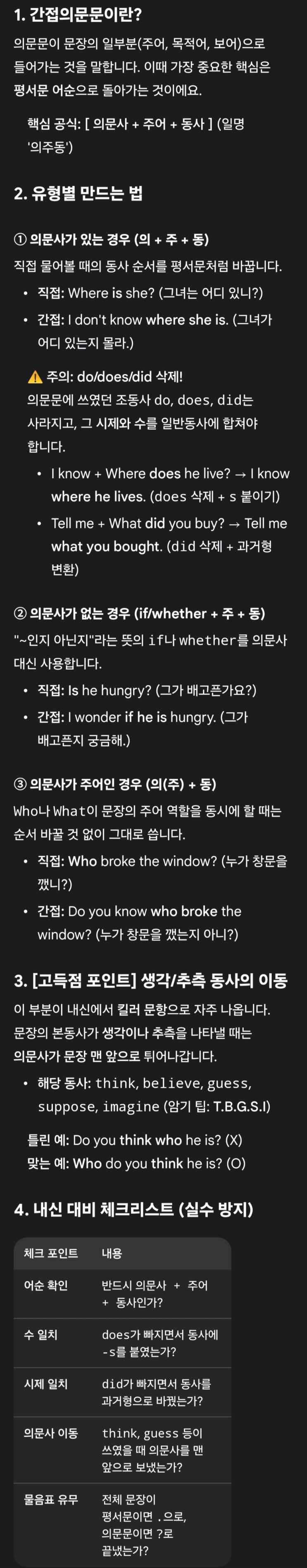 중2, 중3 내신대비, 간접의문문 어려원하네요