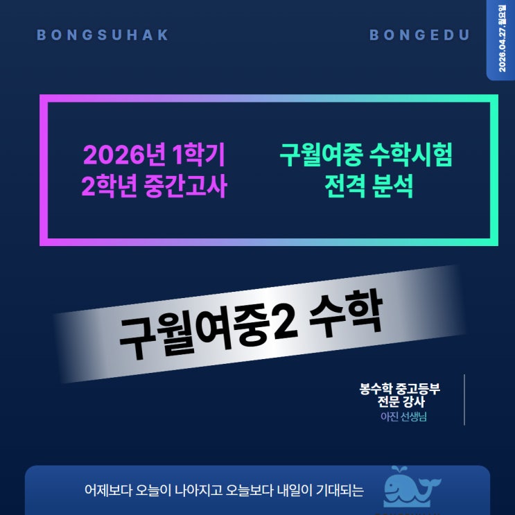 구월동 수학학원) ★봉수학★ 구월여중2 2026년 1학기 중간고사 전격 분석!!