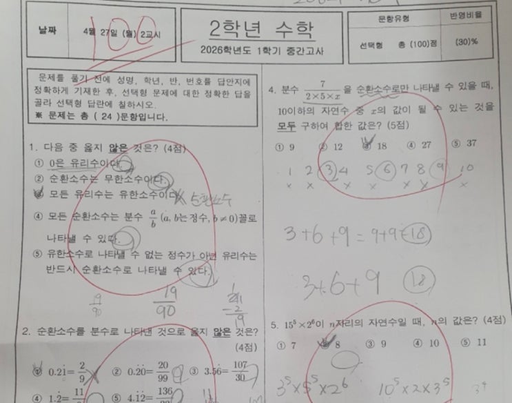안녕하세요? 자곡동해법수학 강남율현초점 입니다. 이번에는 4월 27일 본 수서중 중2 수학 시험지 분석을 해보려 합니다. 위치 확인하기 이번 수서중 2학년 1학기 중간고사 수학시험은 단순 계산 중심 시험이 아니라 개념 이해 + 계산 정확도 + 문제 해석력을 동시에 요구하는 시험이었습니다. 시험지를 실제로 분석해보면 학생들이 왜 어렵다고 느꼈는지, 그리고 점수 차이가 왜 발생했는지 명확하게 확인할 수 있습니다. 시험지로 본 난이도 판단 근거 ✔ 1. 초반은 평이하지만 ‘후반 난이도 급상승 구조’ 1~6번: 기본 개념 → 보통 난이도 7~12번: 계산 + 개념 → 중간 난이도 13번 이후: → 난이도 급격히 상승 초반은....... <img src="https://blogthumb.pstatic.net/MjAyNjA0MjdfMjU3/MDAxNzc3Mjg2NjM1Njkw.IrjPDZPw-sYkd5lUyx6wonoxpCPKdcJRzaoWCU5NCmEg.eBn1ueMOX_iM3LLKk0nGjefygOU8t11odY3SyoG3coog.JPEG/KakaoTalk_20260427_194255245.jpg?type=s3" />