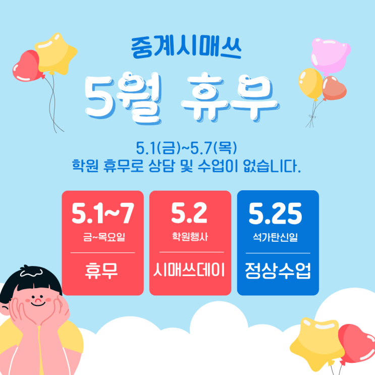 중계시매쓰 5월 학원 휴무안내