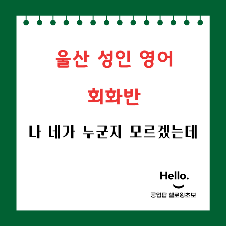 울산 남구 공업탑 성인 영어 회화 학원 헬로 왕초보 "나 네가 누군지 모르겠어"