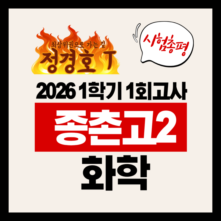 종촌고등학교 화학 1학기 중간고사가 마무리되었습니다. 끝까지 성실히 시험 대비에 임한 친구들 모두 고생 많았습니다 이번 종촌고 화학 시험은 특정 단원에 치우치지 않고. 전 범위에서 고르게 출제되었습니다. 난이도 역시 쉬운 문제부터 까다로운 문제까지 균형 있게 구성되어, 1~2 등급 학생들의 실력 차이가 비교적 분명하게 드러나는 시험이었습니다. 이번 종촌고 화학 시험의 출제 경향 이번 종촌고 화학 시험은 밸런스가 중요했습니다. 세 가지가 모두 갖춰진 학생만 안정적으로 1등급을 받을 수 있는 시험이었습니다. 수강생 성취 현황 정경호 T 클래스에서는 기본 개념을 정확히 다지는 것은 물론 수준 있는 문제를 제한 시간 안에 빠....... <img src="https://blogthumb.pstatic.net/MjAyNjA0MjZfMTA3/MDAxNzc3MTk1Mzk3NTc2.fSfqOpj-2Jb_jn2nuMJjYxF8fYDC4lNkthl5f50xWQcg.qme1yJbAqLSJfQ22hThTtCpPLe9C9h9sQWU8wsxbjTgg.PNG/1.png?type=s3" />