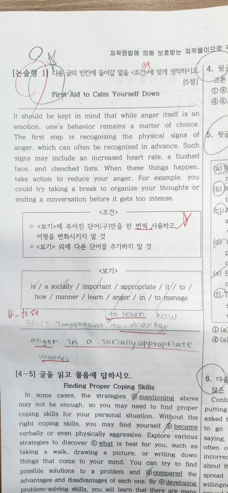 1. 출제 범위 -공통영어 1 : 1과 2과 본문 -26년 3월 모의고사 12문항 2. 출제 유형 선택형 21문항 [85점] 논술형 3문항 [15점] 3. 시험 세부 유형 분석 -교과서 문제 : 선택형 10문항 / 논술형 2문항 -3월 모의 문제 : 선택형 11문항 / 논술형 1문항 ★선택형 문제 유형 ※ 교과서 문제 유형 ① 교과서 :밑줄 친 단어의 영영풀이가 틀린 것 고르기 [학교 학습지 프린트 활용] ② 빈칸 추론 : 교과서 문장을 그대로 빈칸으로 제시한 것이 아닌 문맥상 맞는 응용문장을 고르는 문제 ③ 어법상 틀린 단어들을 있는대로 고르기 [3개 단어, 2개 단어 정답] ④ 내용일치, 불일치 영어 문장 고르기 [ 4개 문장, 2개문장 ] ⑤ New 유형 : 난이도 중 [ 배....... <img src="https://blogthumb.pstatic.net/MjAyNjA0MzBfMjE2/MDAxNzc3NTUyOTM4NDc1.BMRgnSjz89KrLYfXcg_7Q50heUfK3nndpccd9rkVWGog.LHIlOLkWXUqybsSllWGL7PcxHmtlcTMIUBCAX6PQNR0g.JPEG/20260430_162633.jpg?type=s3" />