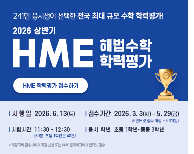 토요일 오전9시30분~12시30분까지~ 초4.5.6 학생들 토요일 오전에 일찍 일어나기 힘들텐데 성실하게도 불평없이 모여 열공하는 모습 정말 기특합니다. 열심히 학습한만큼 좋은 결과와 실력이 업그레이드 되기를 기대해봅니다. <img src="https://blogthumb.pstatic.net/MjAyNjA0MTRfMTMx/MDAxNzc2MTUyMDczMzM0.0RlZeuqWQhryhjOvf897dZQz5Iv_BKFEpZ0-alFj8-8g.HFjatpAp5tgy5PyhIYkqKVJYOw1LHL9n0qjrqj9f1rAg.JPEG/hme_visual_20260613-1.jpg?type=s3" />