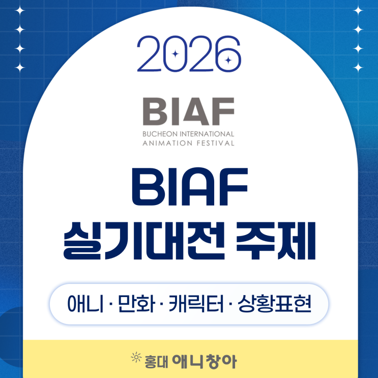 2026 BIAF 실기대전 애니메이션 · 만화 · 캐릭터 · 상황표현 주제 안녕하세요! 홍대 애니창아입니다 :) 4월 11일, 토요일인 오늘은 BIAF-부천국제애니메이션페스티벌 실기대전이 진행되었습니다! 디자인, 애니메이션을 통틀어 가장 빠르게 개최된 실기대회인 것 같은데요~ 과연 어떤 주제들이 선택되었을지 홍대 애니창아와 함께 알아보도록 하겠습니다 길을 걷고 있는데 갑자기 내 휴대폰에 정체를 알 수 없는 메세지가 도착한다. 처음 보는 번호이지만 메세지의 내용은 곧 나에게 일어날 일에 대한 힌트를 담고 있다. 나는 처음에는 장난이라고 생각하지만, 메세지에 적혀 있던 일이 실제로 그대로 일어나는 것을 보며 점점 혼란스러워진다....... <img src="https://blogthumb.pstatic.net/MjAyNjA0MTFfMTg5/MDAxNzc1ODgxMzY2NzUy.wsYMh2DSlVTo00njgagfAOn2nQXJVfvj1BzxeIzoPywg.MHJJs2lZ9NGNXc_3a2XjLOND7oVWo8HftIm2Zd2O-lAg.PNG/%BD%BD%B6%F3%C0%CC%B5%E51.PNG?type=s3" />