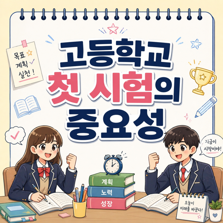 고등학교에 입학한 신입생들에게 첫 중간고사는 단순한 시험이 아닙니다. 앞으로 3년간 이어질 내신 관리의 출발점이며, 공부 습관과 자신감을 결정하는 중요한 분기점입니다. 중학교 시험과 비슷할 것이라고 생각하고 접근했다가 예상보다 넓은 시험범위와 어려운 문제 유형에 당황하는 학생들이 많습니다. 그래서 고등학교 첫 시험은 “얼마나 오래 공부했는가”보다 어떻게 준비했는가가 훨씬 중요합니다. 왜 고등학교 첫 중간고사가 중요한가요? 고등학교 내신은 한 번의 시험으로 끝나지 않습니다. 첫 시험 결과는 이후 학습 태도와 자신감에 큰 영향을 줍니다. 첫 시험에서 좋은 결과를 얻은 학생은 다음 시험도 안정적으로 준비하는 경우....... <img src="https://blogthumb.pstatic.net/MjAyNjA0MjFfMjQ5/MDAxNzc2NzcwNzQ0MDY5.4ScLR9Smg-TfrkK4aORmFYZ8o0WnuHu89CilBOhoaPgg.1S3wOMIEuBdC8OrONdQ7SNP9fCxBELZVMCuaXjkKBGYg.PNG/ChatGPT_Image_2026%B3%E2_4%BF%F9_21%C0%CF_%BF%C0%C8%C4_08_25_13.png?type=s3" />